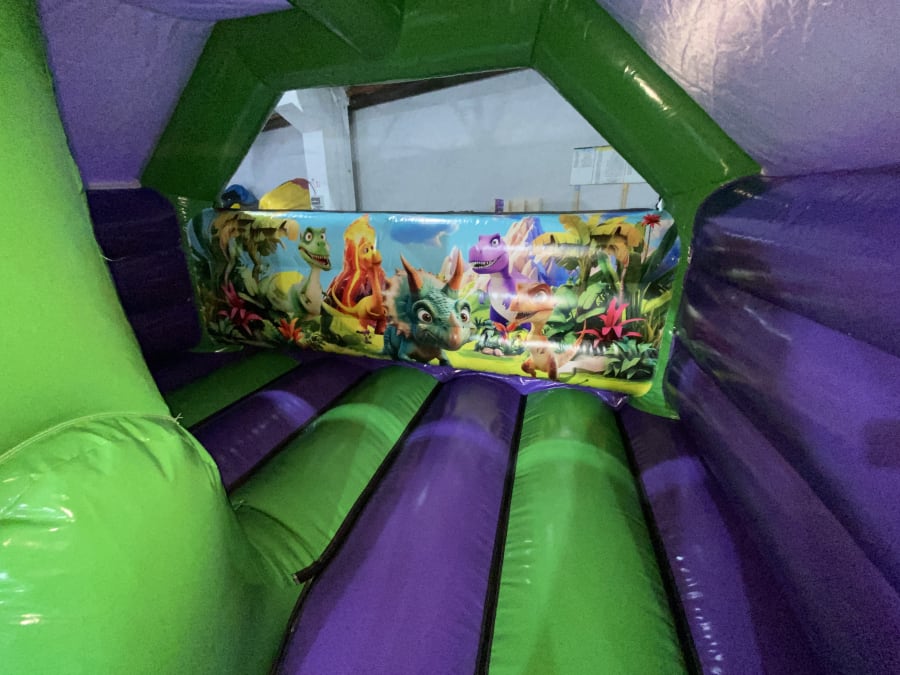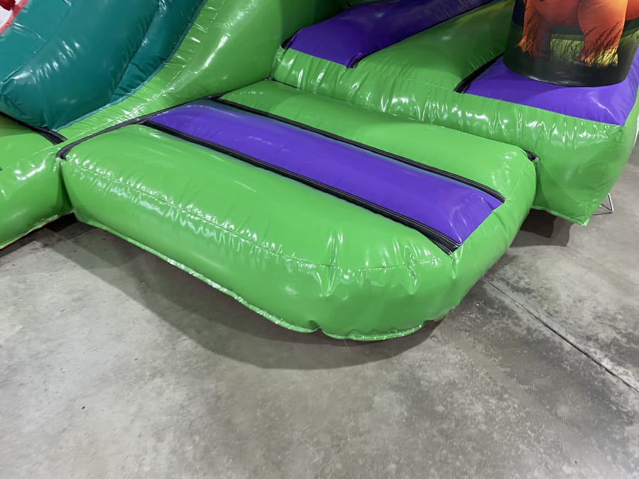 Bring prehistoric excitement to your party with the 15x15ft Dinosaur double slide. This dinosaur castle features a striking 3D T-Rex head and a twin slide that streams from the dinosaur’s mouth. Bright colours, dramatic design, and safe play surfaces make it perfect for birthday parties and other events. Easy to set up. Instant wow factor. 🌟