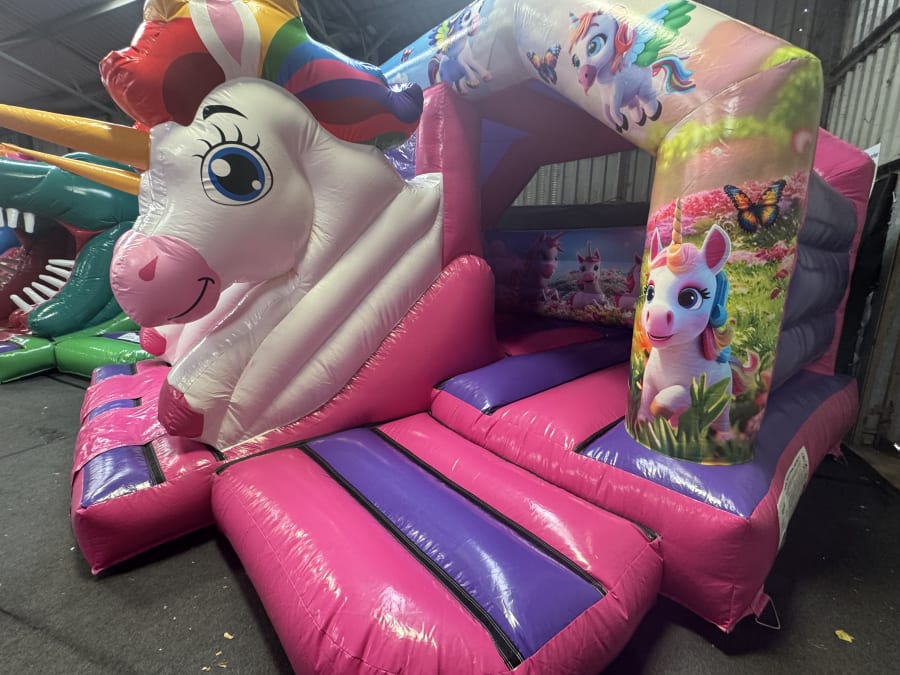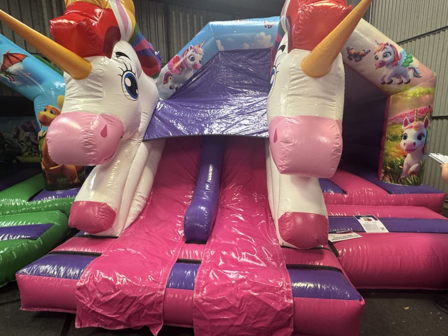 We provide trusted bouncy castle hire with reliable delivery and setup. Bouncy castle hire Double unicorn slide in chichester, Havant, Emsworth, waterlooville, petersfield, liss, Fareham, gosport. Book with confidence for on-time delivery and professional installation. 🚚