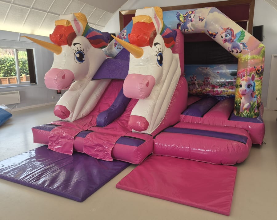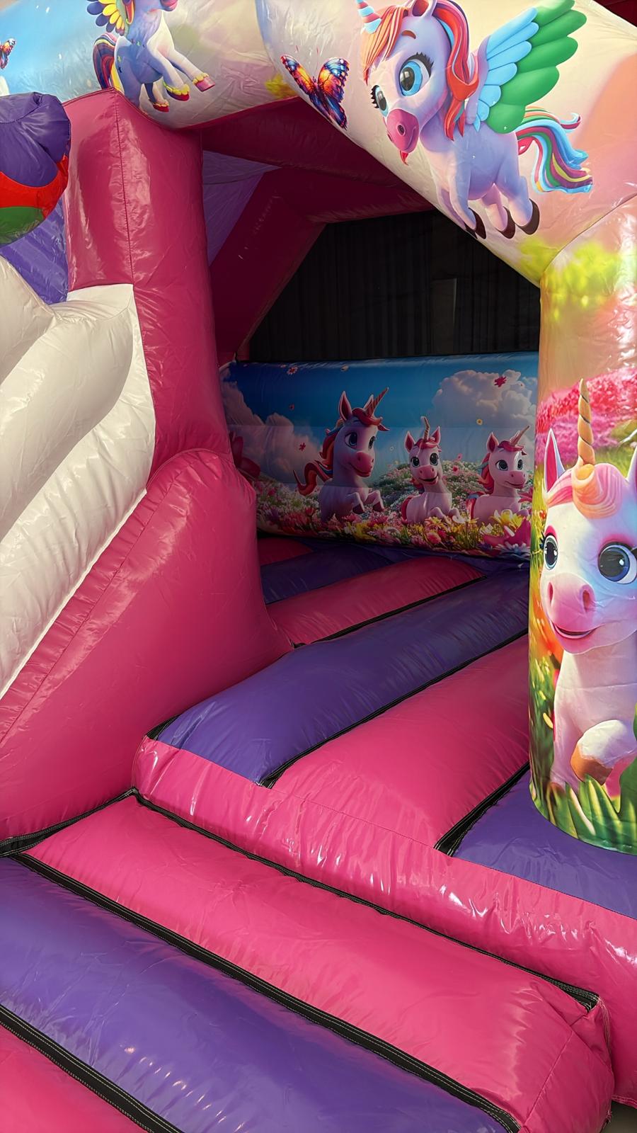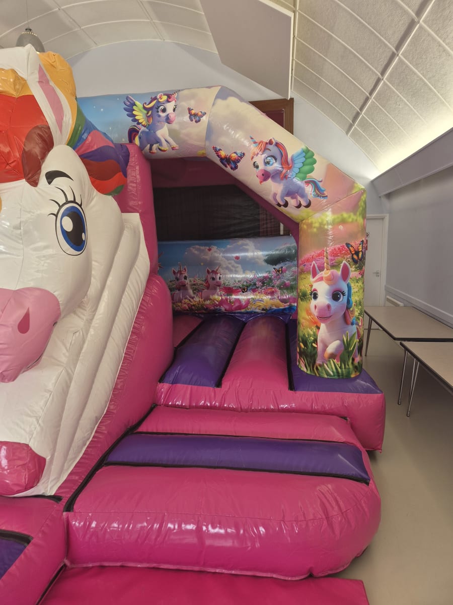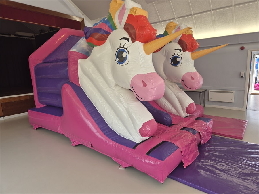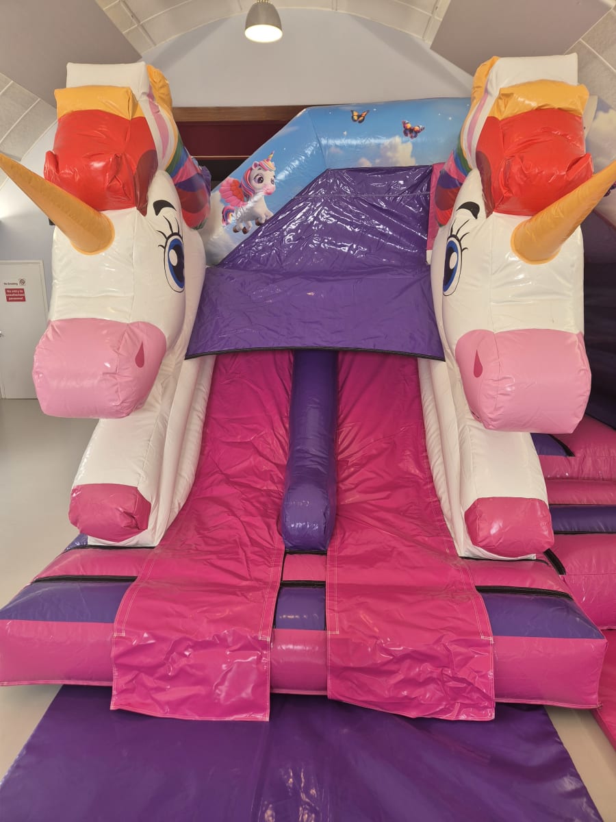 We provide trusted bouncy castle hire with reliable delivery and setup. Bouncy castle hire Double unicorn slide in chichester, Havant, Emsworth, waterlooville, petersfield, liss, Fareham, gosport. Book with confidence for on-time delivery and professional installation. 🚚