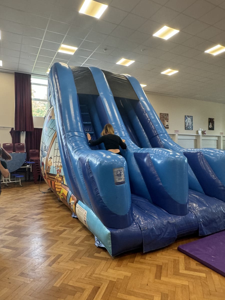 Looking to take your child's birthday party to the next level? Our 14ft high pirate slide is the perfect addition to any celebration in Havant, Emsworth, Chichester, or Southampton! This vibrant blue inflatable slide will bring hours of fun and excitement to your event.