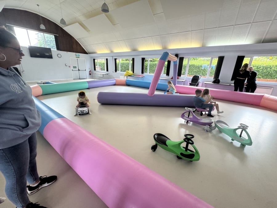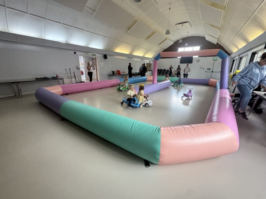 The 32 x 26 foot Didi Car Track delivers a bold, safe play zone for parties, events, and playdates. This Didi Car Track comes with 5 Didi Cars and gives children Hours of fun. Bright, durable and easy to supervise. Perfect for hire across Havant, Portsmouth, Emsworth, Chichester, Southampton. ๐