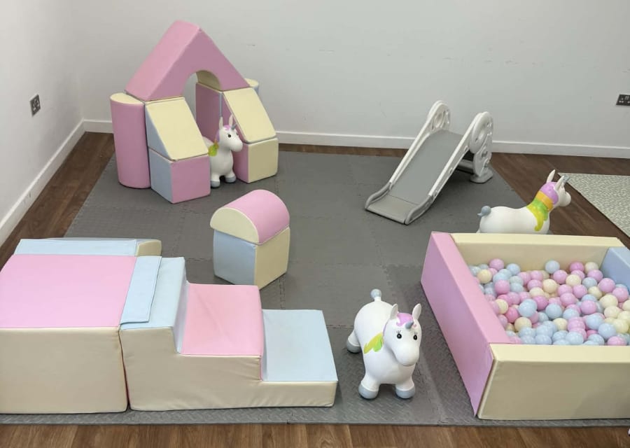 Pastel Soft Play 2 brings pastel charm and safe fun to every kids' party. This soft play set combines unicorn magic with active play. It includes 3 unicorn Bouncers, soft play blocks, a Fun Ball pit, a slide and 2 mercede's ride on's. Perfect for birthdays, nurseries, and community events. Available for delivery in Havant, Portsmouth, Chichester, Emsworth, Southampton.