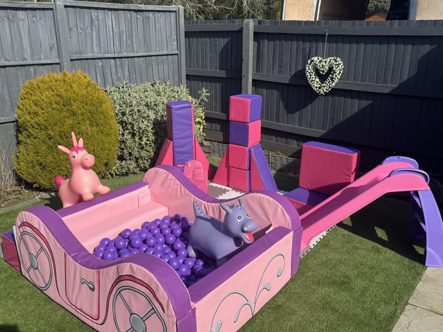 Whether you're planning a birthday bash or a celebration for a christening, our Pink & Purple Soft Play Set is the perfect choice. The set’s delightful design and safe, soft materials make it an ideal playground for children, ensuring they have a delightful and secure experience. Plus, the princess carriage style ball pit will spark endless adventures, making it a must-have for any child-friendly event.