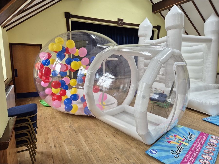 Ready-made party fun with premium equipment. The Premium Blue Package delivers a striking 12x15 white castle, an 8 foot ball pit with double slide, and matching blue and white soft play. A balloon dome in your chosen colours and enjoy fast, professional service with 45 minute setup and pack down. Perfect for birthdays, family events and community fêtes. 🎉🏰