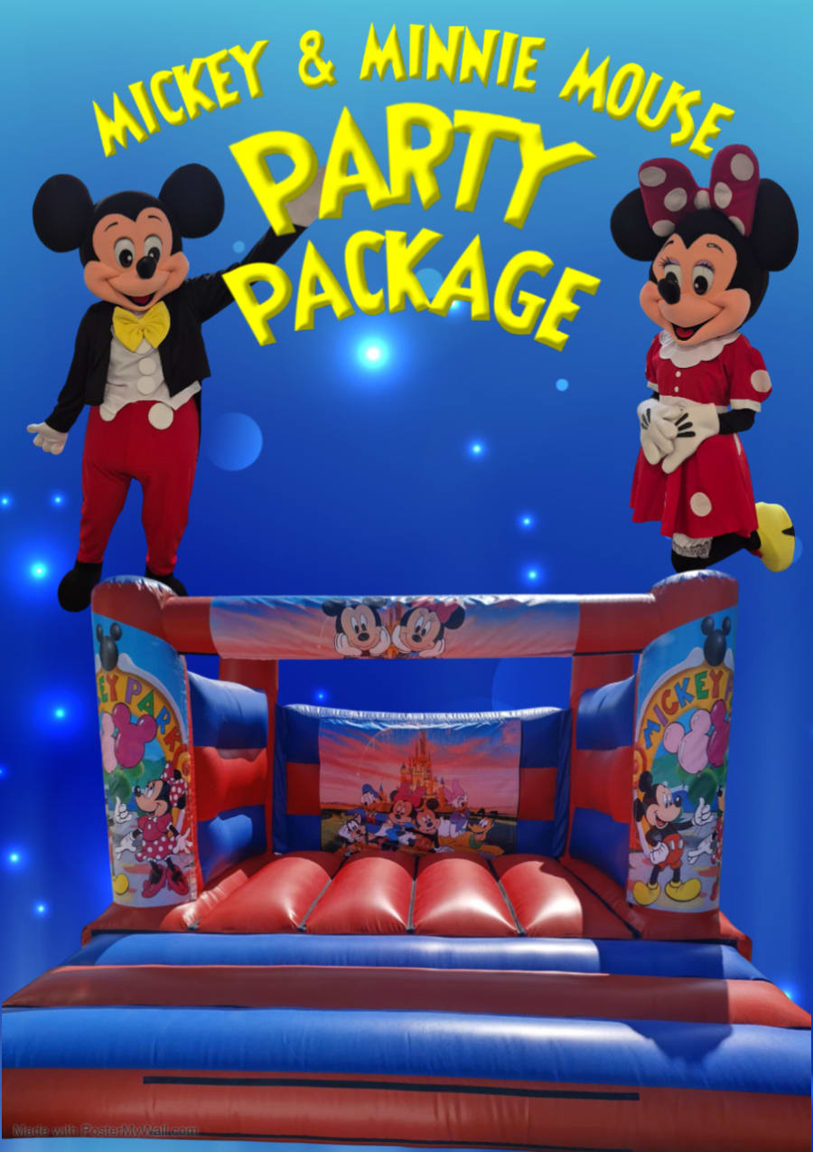 Bring magic to your child’s celebration with the Mickey & Minnie Mouse Party Package. 🎈 This party-ready bundle pairs a colourful themed castle with a live 30 minute visit from Mickey and Minnie. Perfect for toddlers and young kids. Fast setup. Safe play. Big smiles.